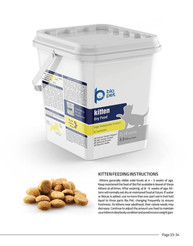 یک بچه گربه سالم برای انجام تمام فرآیندهای بیولوژیک بدنش به یک مجموعه کامل از ویتامینها نیاز دارد. تمام ویتامینهای مورد نیاز بدن او در غذای کیتن توسط مکمل بایوپت گنجانده شده است.از آنجایی که گربههای خانگی کمتر در معرض تابش آفتاب قرار میگیرند بیشتر مستعدمشکلات و عوارض سیستم اسکلتی هستند،به تمام مواد مورد استفاده در ساختار مفاصل و سیستم اسکلتی در غذای بایو پت دقت شده است که استفاده از آن به رشد وتکامل استخوانها و حفظ سلامت مفاصل کمک میکند.اینها تنها بخشی از دلایل فراسودمند بودن این غذا است.